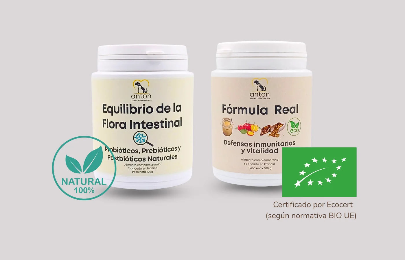 El Lote Defensas + Flora Intestinal combina dos suplementos naturales y ecológicos que actúan de forma complementaria para fortalecer el sistema inmunitario, mejorar la vitalidad y mantener una digestión equilibrada en perros y gatos.