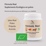 - Fórmula Real ECO (100 g) – Jalea real, polen, propóleo y acerola. Estimula el apetito, la energía y refuerza la inmunidad natural, protegiendo frente al cansancio y el estrés estacional.