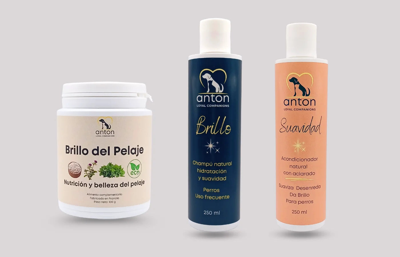 Cuidado completo del pelaje con champú hidratante, acondicionador desenredante y suplemento ECO que nutre desde la raíz para un brillo visible y duradero.