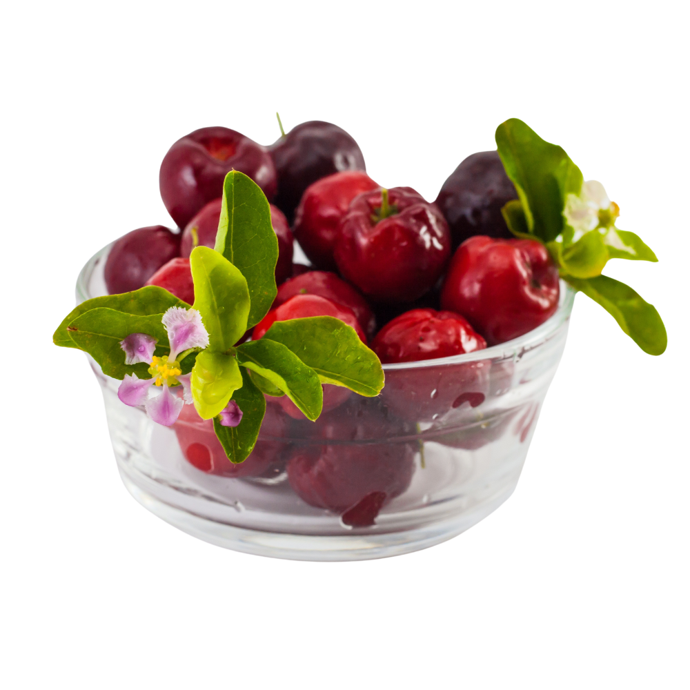 Acerola (24 %): fonte natural de vitamina C que apoia as defesas e reduz a fadiga.