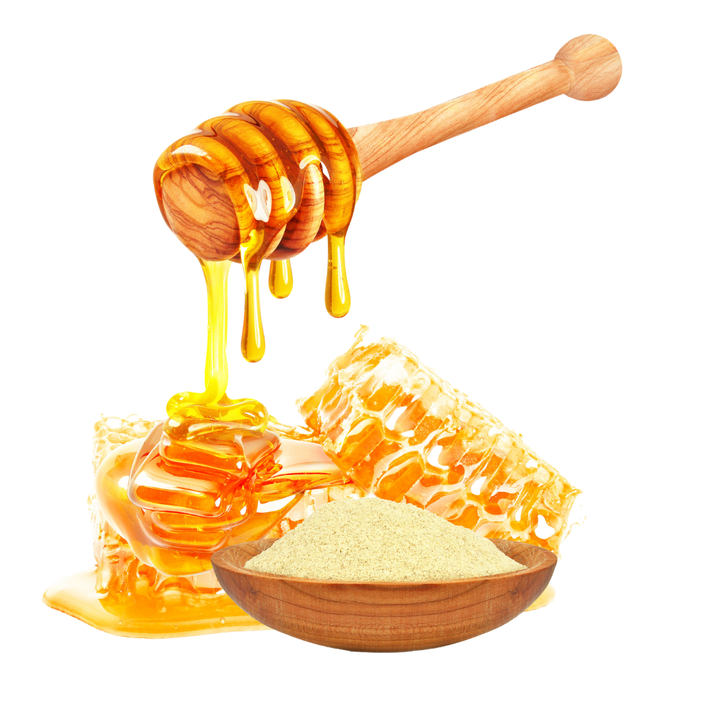 Geleia real (24 %): rica em vitaminas do grupo B e aminoácidos essenciais, favorece o apetite e a recuperação após doenças, cirurgias ou períodos de fraqueza.